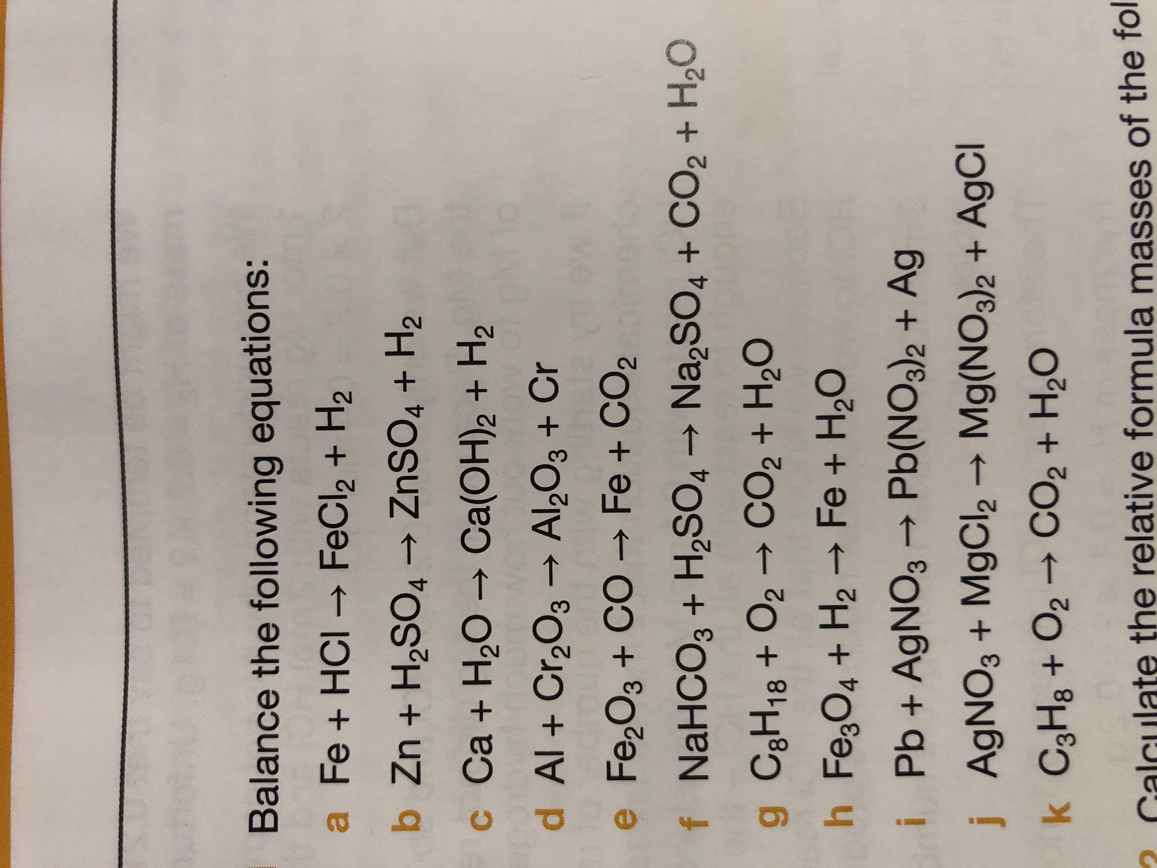 h. Fe3O4 + 4H2= 3Fe + 4H2O