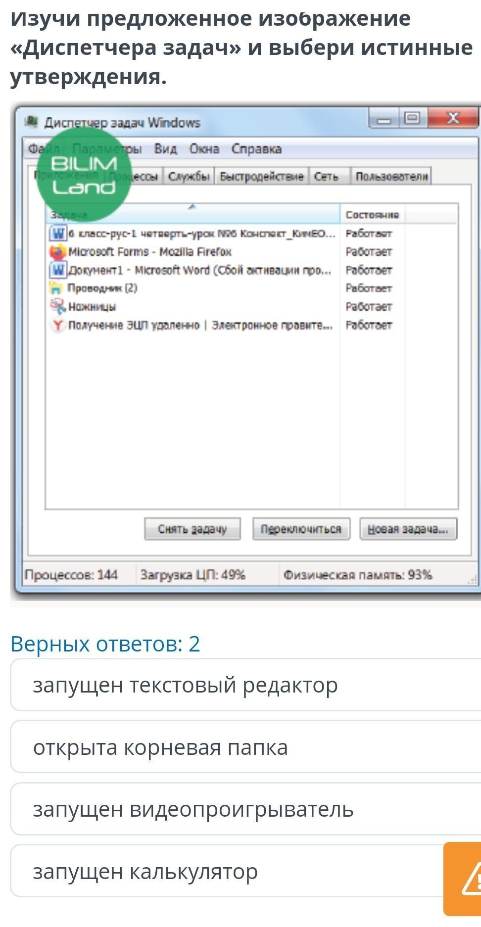 Изучи предложенное изображение "Диспетчера задач" и выбери истинные утверждения.