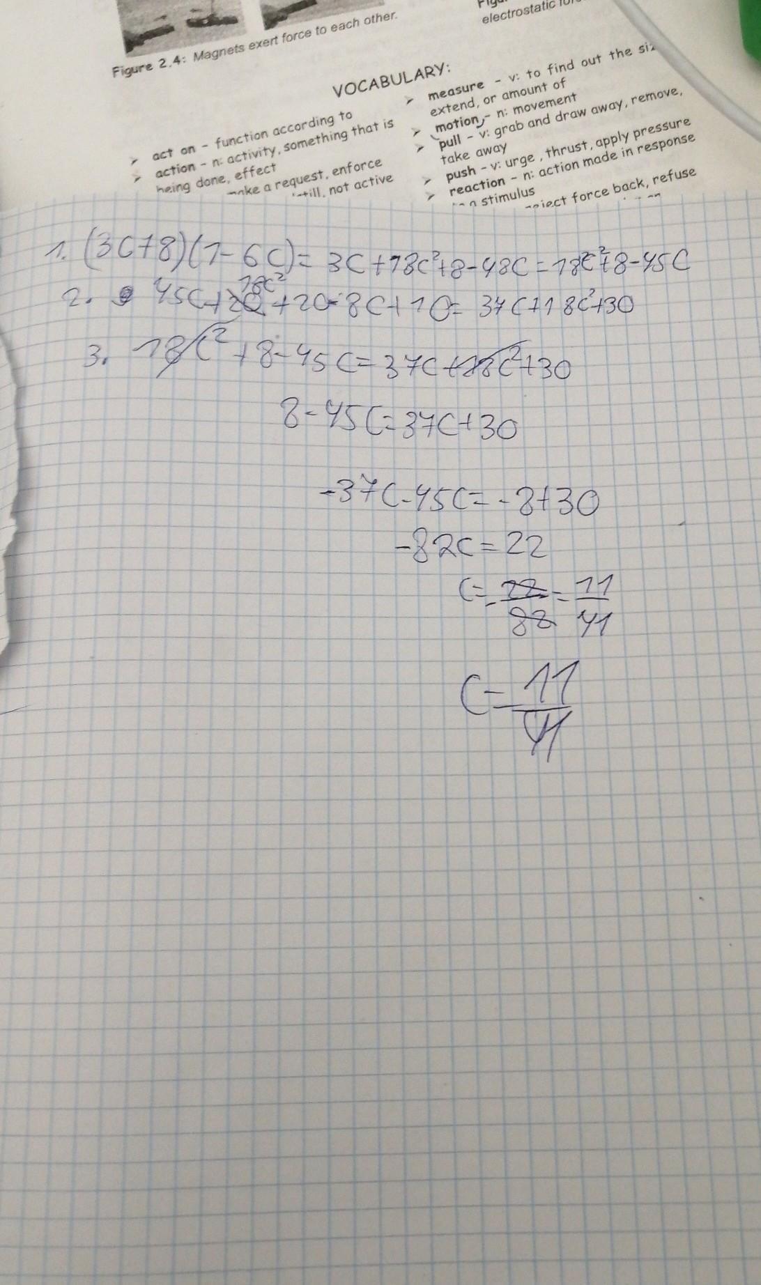 Тождественные преобразования выражений. Урок 2 Реши уравнение (3c + 8)(1 – 6c) = 10 + (9c + 4)(5 – 2c).