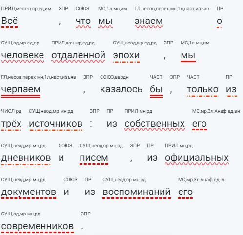 Сделайте синтаксический разбор предложения (выделить грамматическую основу , все члены предложения и после составить характеристику) . Всё, что мы знаем о человеке отдаленной эпохи, мы черпаем, казалось бы , только из трёх источников: из собственных его дневников и писем, из официальных документов и из воспоминаний его современников. ЗАРАНЕЕ СПАСИБО!