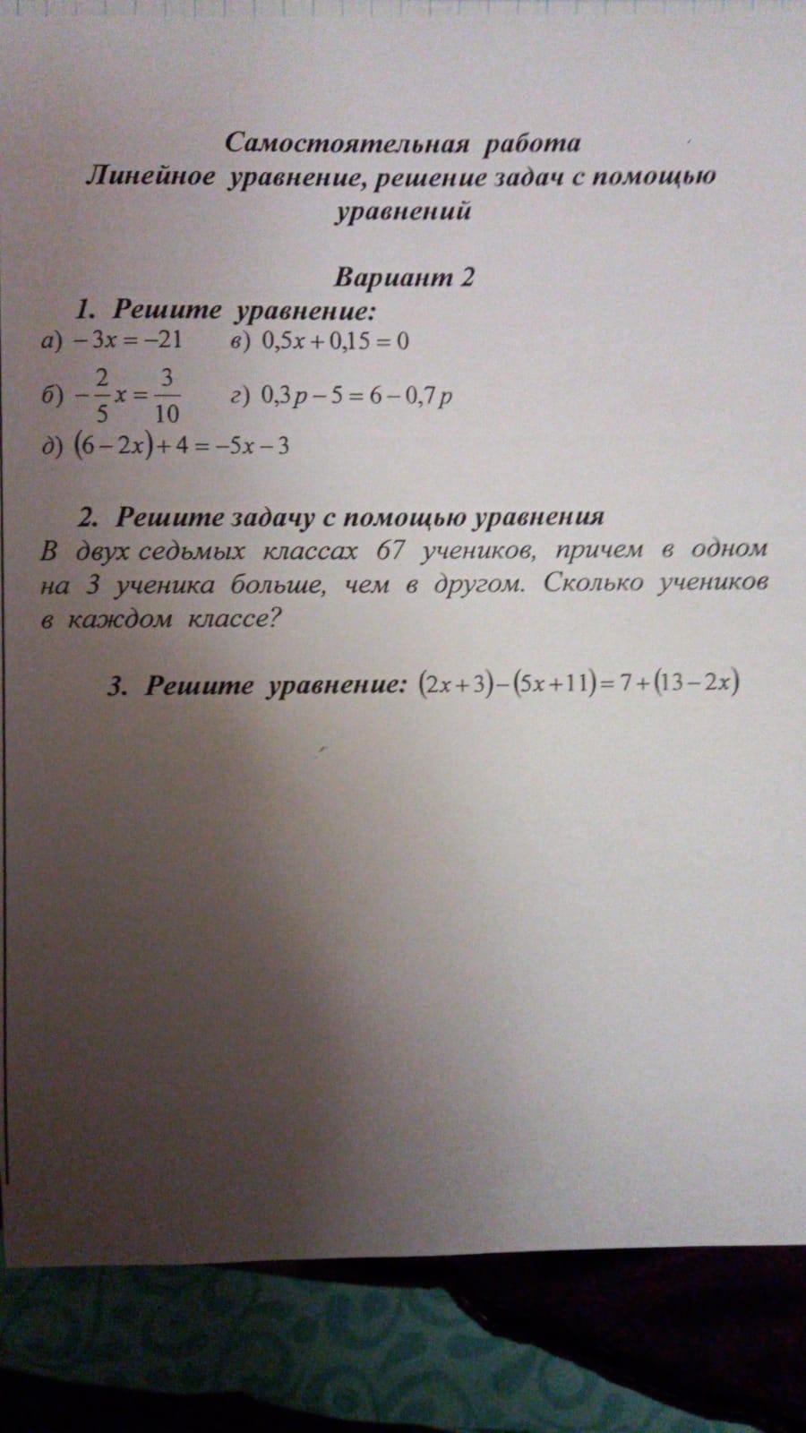пусть x-учеников в перовом 7 классе, тогда во втором 7 классе x+2. всего 67