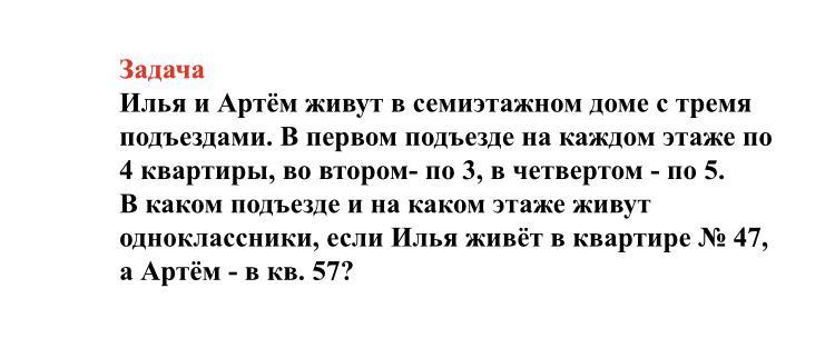Ответ:Илья живет в 2 подъезде а Артём в 3-ем.