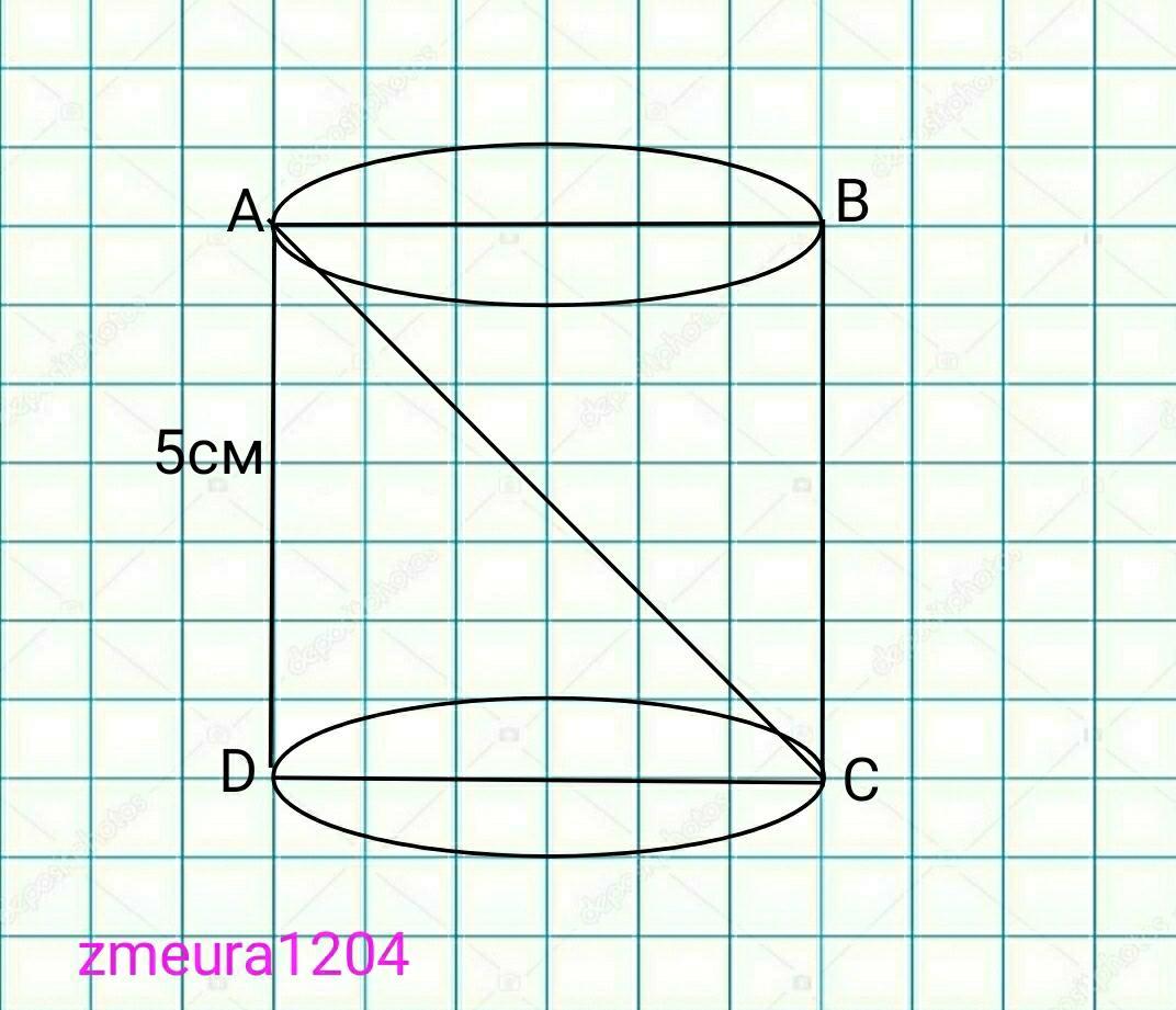 Довжина кола основи циліндра дорівнює 12π см а твірна 5.Знайти діагональ основного перерізу циліндра
