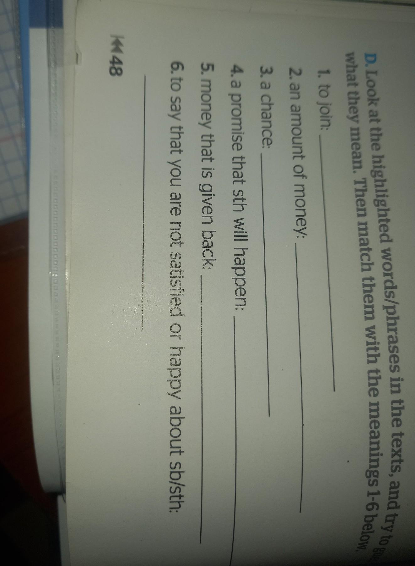 прошу помощи !! слова из текста :opportunity, sum,complaining, refund,guarantee , sing up