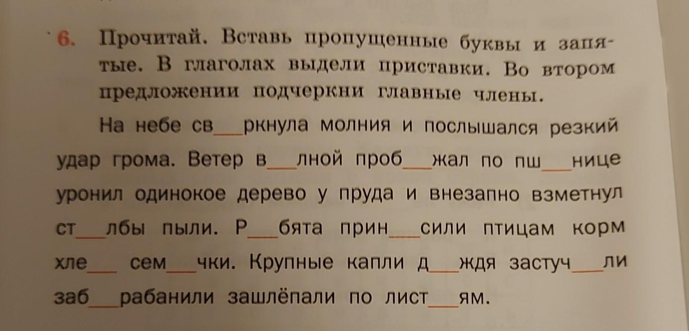 на небе сверкнула молния и послышался резкий удар грома.Ветер волной пробежал по пшенице,уронил одинокое дерево у пруда и внезапно взметнул столбы пыли.Ребята принесли птицам корм,хлеб,семечки.Крупные капли дождя застучали,забарабанили,зашлёпали по листья.