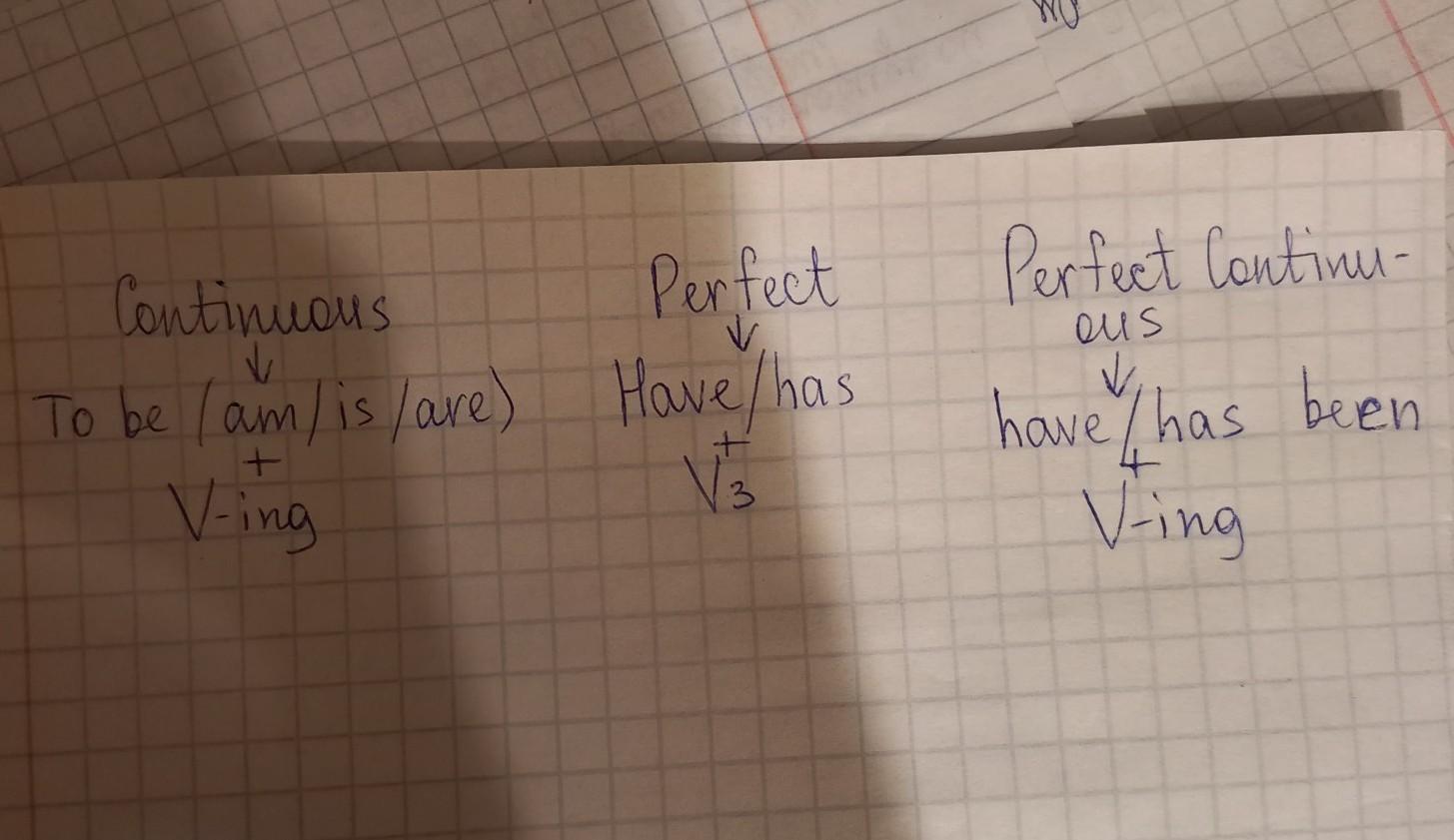 Present Perfect Continuous-Настоящее Совершенное Продолженное образуется при помощи Have/has+3-я форма глагола To be, т.е. been +основной глагол в "инговой"форме