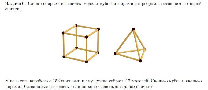 спички. У него есть коробок со 156 спичками и ему нужно собрать 17 моделей. Сколько кубов и сколько