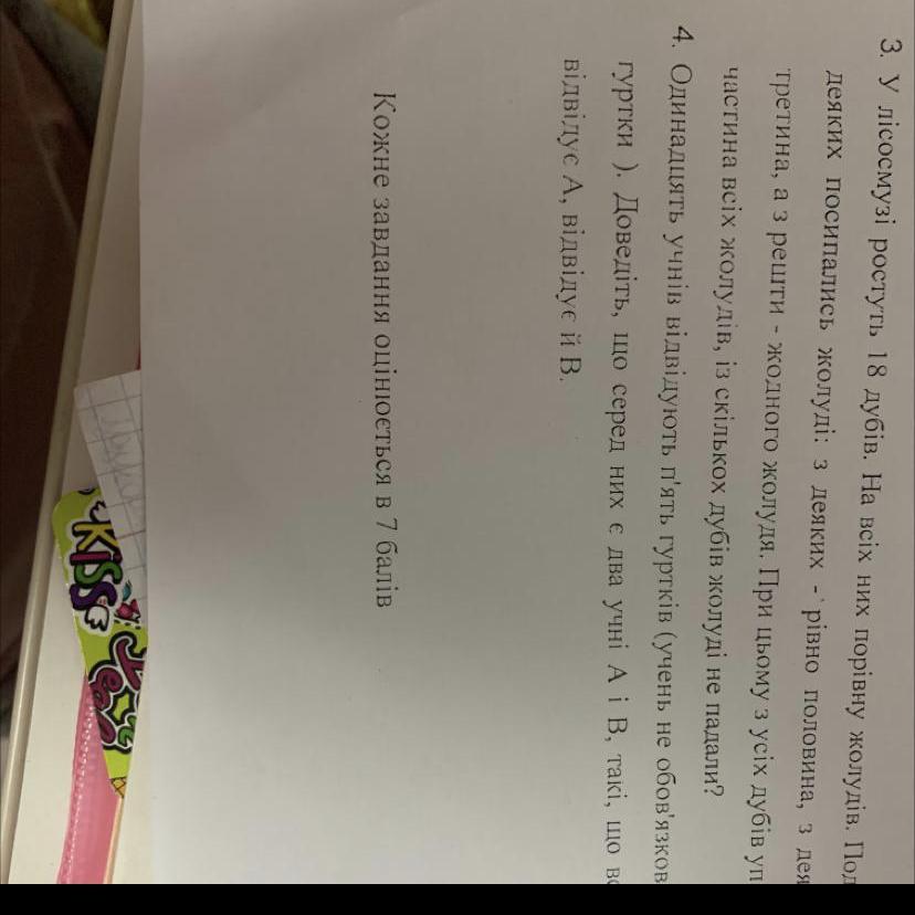 Пронумеруємо гуртки числами 1, 2, 3, 4, 5. Тоді розглянемо 10 груп множин гуртків: {1, 12, 123, 1234, 12345}, {2, 23, 234, 2345}, {3, 34, 345, 3451}, {4, 45, 451, 4512}, {5, 51, 512, 5123}, {13, 134}, {14, 124}, {24, 245}, {15, 135}, {235}. За принципом Діріхле, якісь два учні потраплять до однієї групи, це й будуть шукані учні А і В.