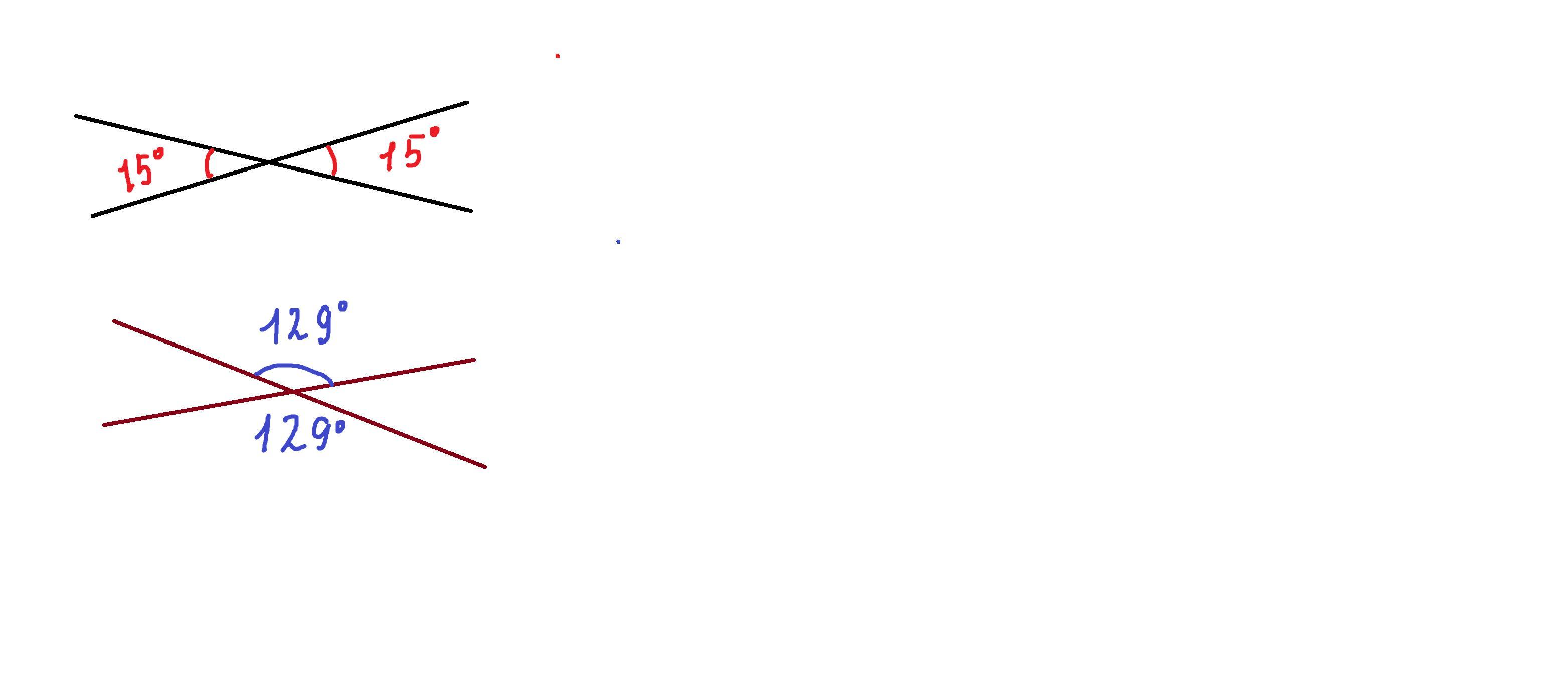 Помогите пожалуйста Я не понимаю можете решить и объяснить. Буду благодарна. Один з вертикальних кутів дорівнює: 1) 15°; 2) 129°. Знайдіть другий кут.