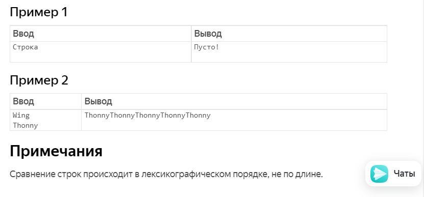 Вывести меньшую из строк 5 раз подряд без пробелов, если ни одна из строк не пустая.