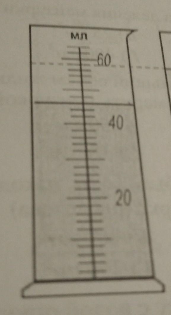 5. Определите объем воды, находя- щейся в мензурке (рис. слева). А) 46 см; Б. 60 см, В) 40 см; Г) 49 см 3
