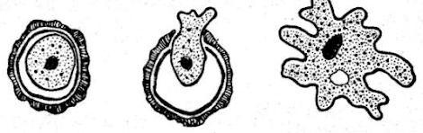 В неблагоприятных условиях (низкая температура, высыхание водоема) эвглена зеленая образует цисту. При образовании цисты происходит отпадание жгутика, клетка приобретает округлую форму и покрывается плотной оболочкой.