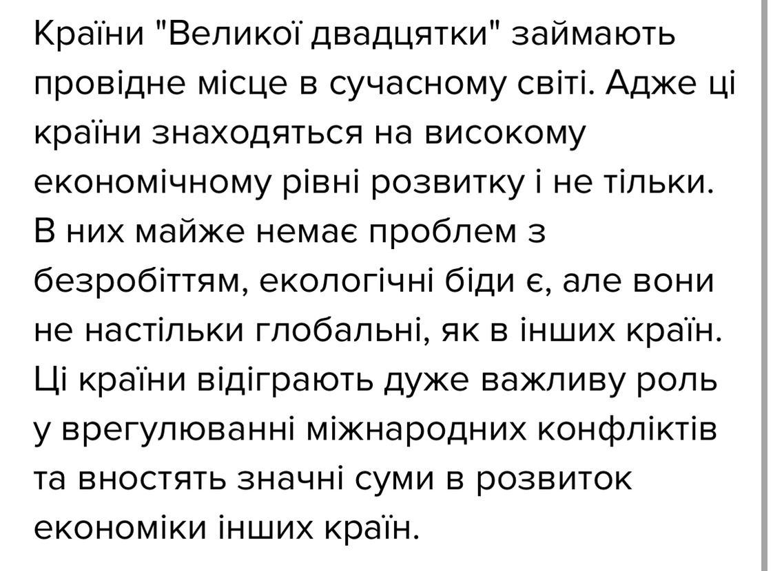 Записати країни, які входять до «Великої двадцятки» та вказати рiвнi їх