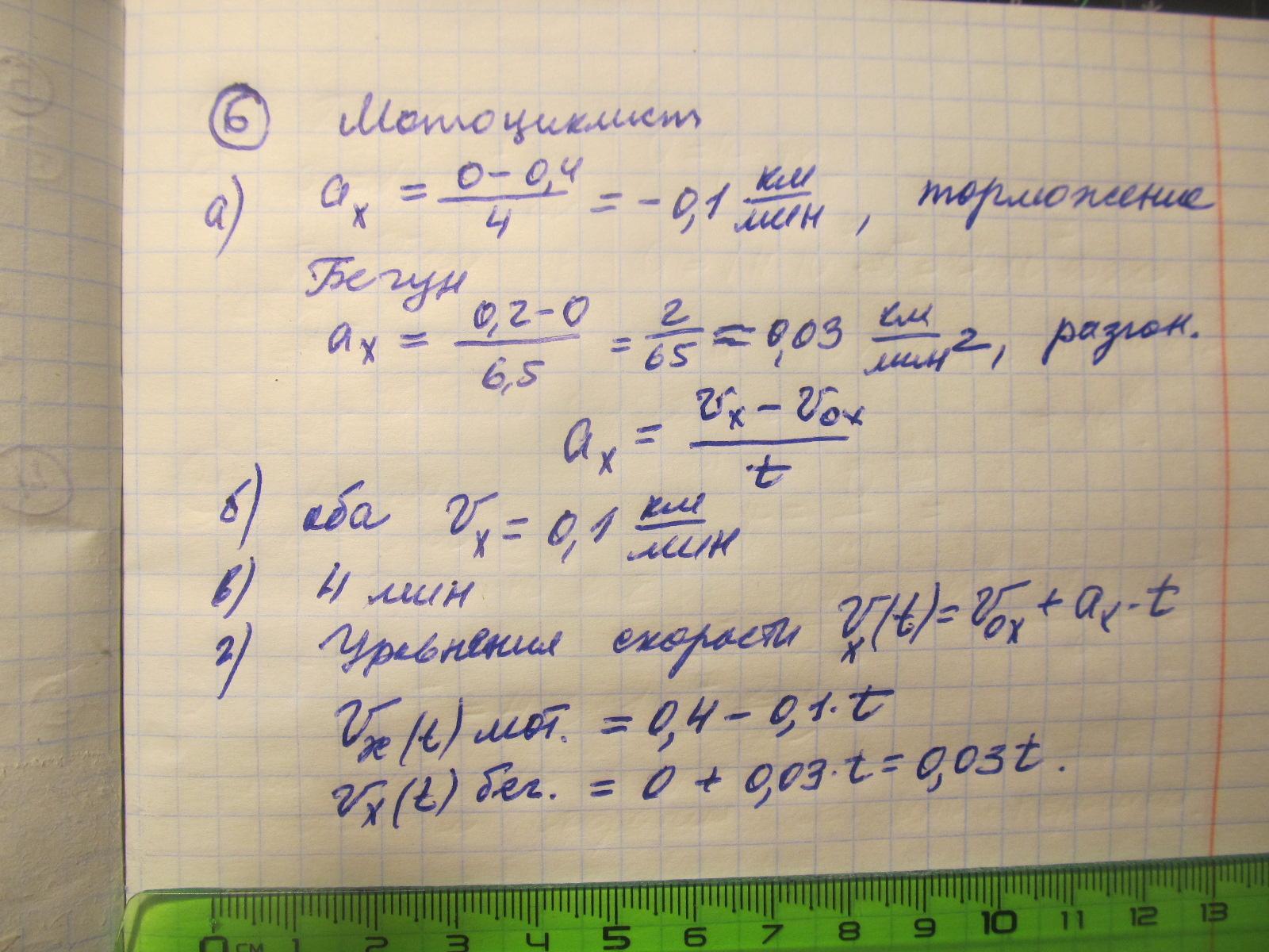 По графикам проекции скорости движения мотоциклиста I и бегуна II, (рис.58) определите: а) проекции ускорения их движения; б) проекции скорости каждого из них спустя 3 мин; в) время движения мотоциклиста до остановки . Запишите уравнение проекции скорости V(x)t для каждого из движений. Что означает точка A пересечения графиков скорости?