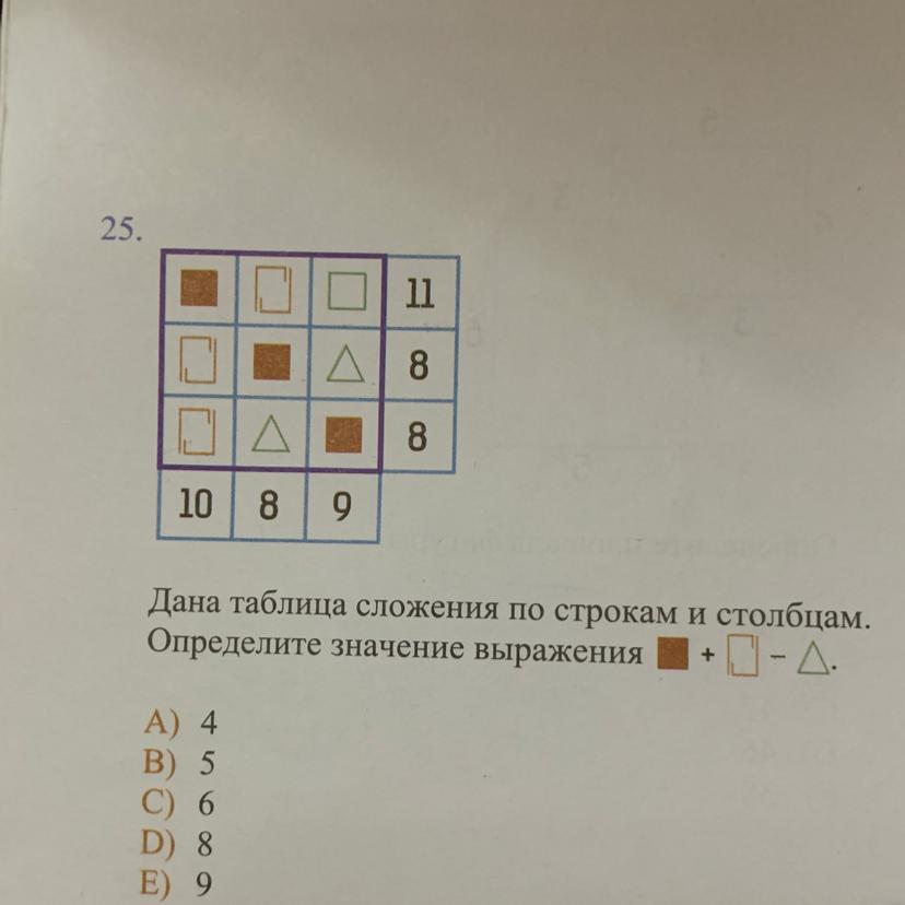 раз это таблица сложения нужно чтоб сумма в строке по горизонтали и вертикали совпадали с числами которые указаны. по горизонтали 4+3+4=11, 3+4+1=8. 3+1+4=8. по вертикали 4+3+3=10. 3+4+1=8. 4+1+4=9. ну и соответственно выражение 4+3-1=6