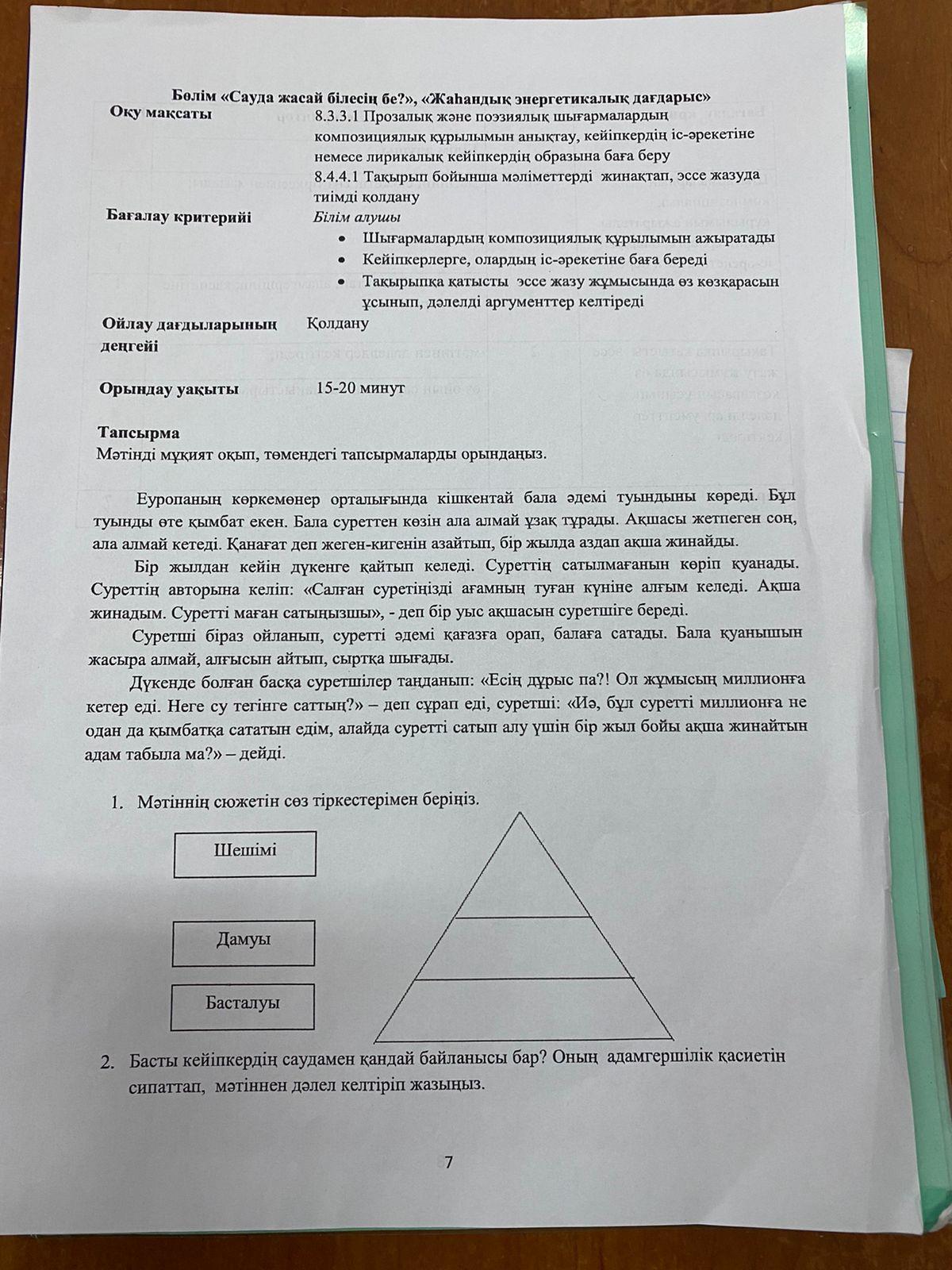 Дамуы : бір жылдан кейін дүкеге қайта келді Басталуы : кішкентай баланын көркемөнер орталығынан әдемі туындыны көруі
