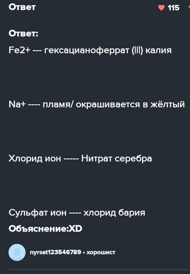 Умоляю срочно дам 100балв 2. Соотнесите следующие катионы и анионы с реагентами для качественного анализа. Катион/Анион Fe Реагент Нитрат серебра | Хлорид бария | Гидроксид натрия Пламя / окрашивается в желтый цвет Хлорид-нон Сульфат -ион