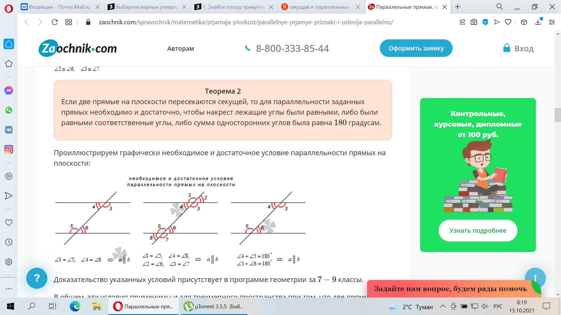 Г) если пересечении двух прямых секущей сумма на крест лежащих углов состовляют 180,то эти две прямые параллельны