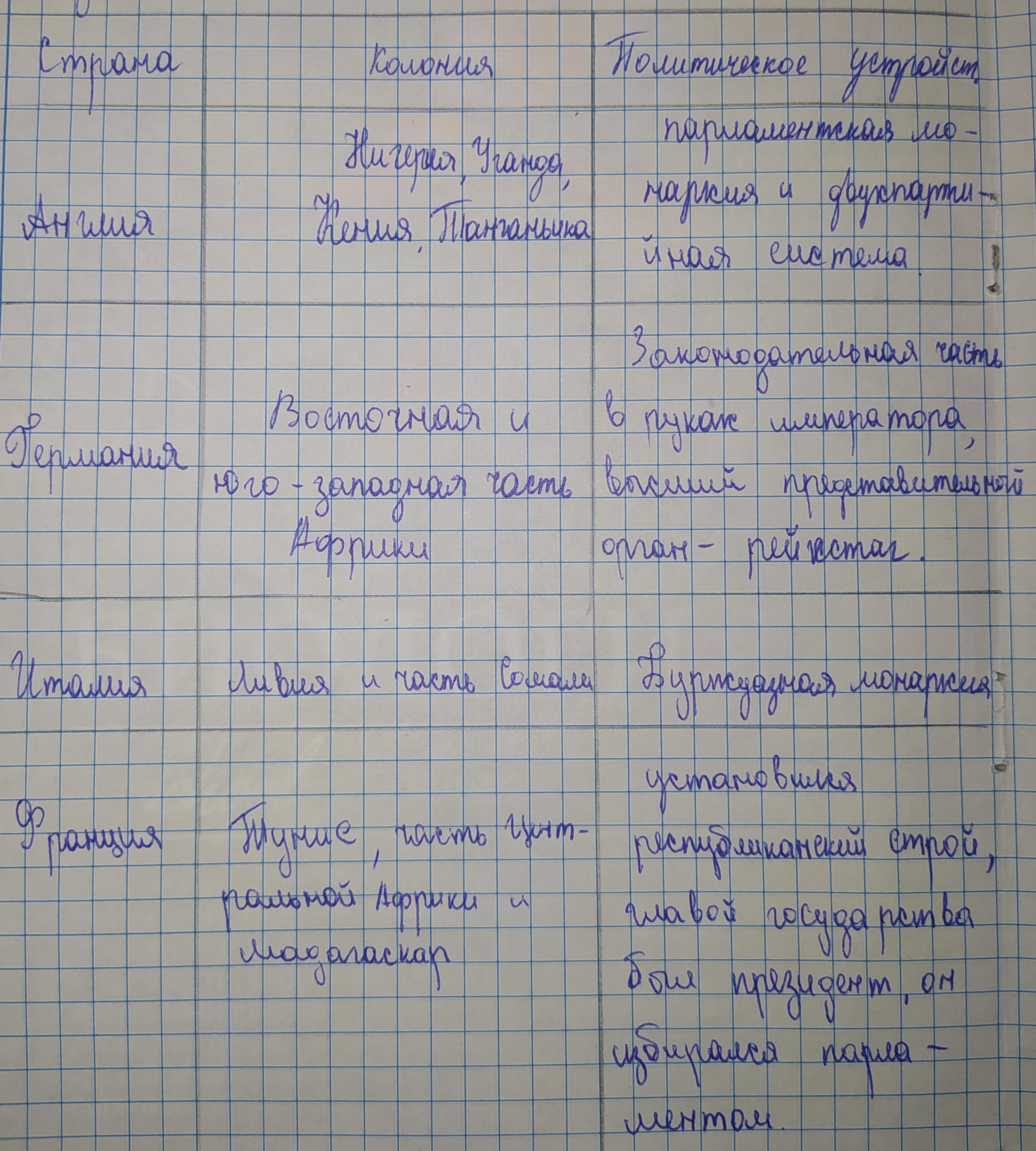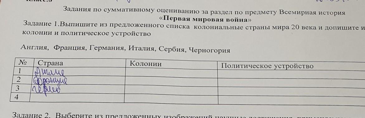 1.Выпишите из предложенного списка колониальные страны мира 20 века и допишите их Колонии и политическое устройство Англия, Франция, Германия, Италия, Сербия, Черногория