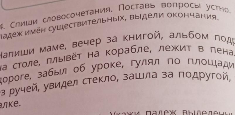спиши словосочетания поставь вопросы устно определи падеж имён существительных выдели окончания. Пожалуйста помогите