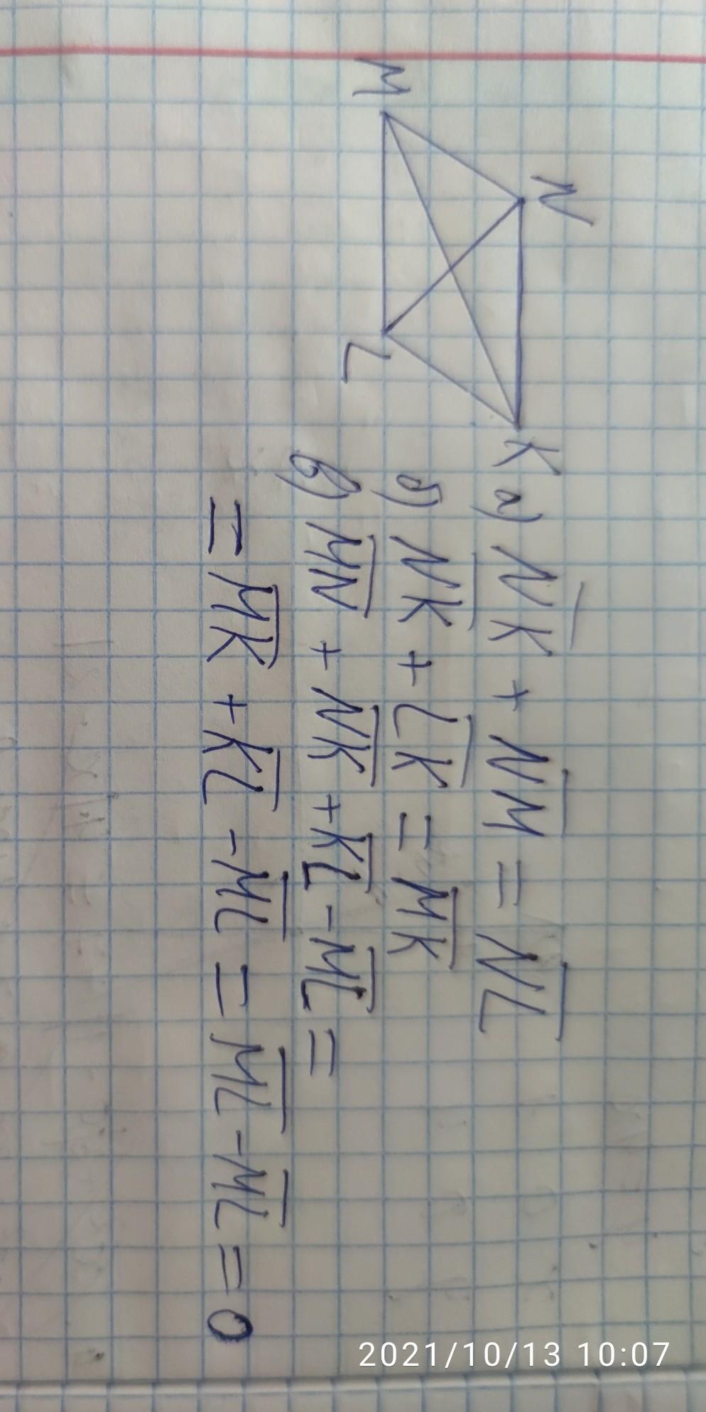 Дан параллелограмм MNKL. Начертите следующие векторы: