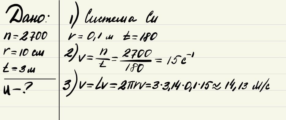 вентилятор вращается с постоянной скоростью и за три минуты совершает 2700 оборотов. определите линейную скорость точки, расположенной на краю лопасти вентилятора на расстоянии 10см от оси вращения