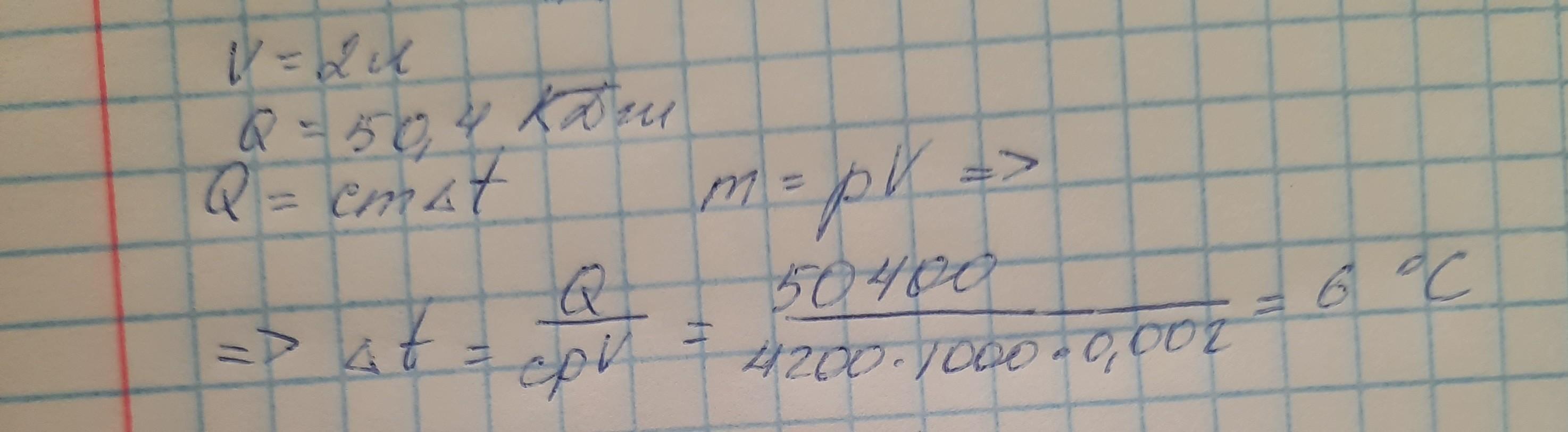 Определи, на сколько градусов нагреется вода объёмом 2 л, если ей сообщить количество теплоты, равное 477 Дж. Удельная теплоёмкость воды равна 4200 Дж/(кг·°C), плотность воды — 1000 кг/м³.СРОЧНО!