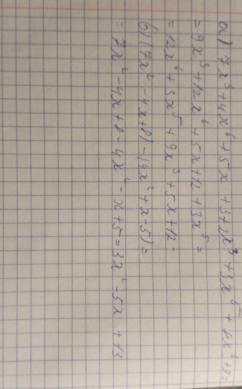 а)7x³+4x⁶+5x+3+2x³+3x⁵+8x⁶+9