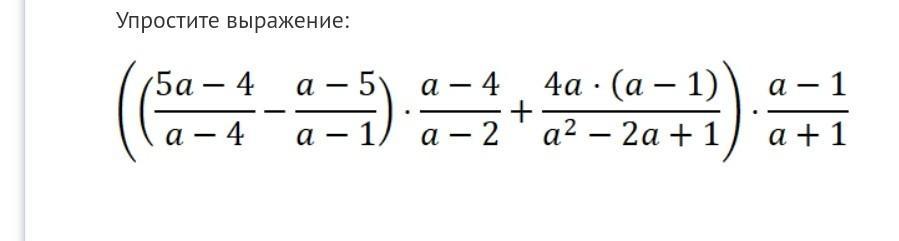 (((5a-4)/(a-4) -(a-5)/(a-1))·(a-4)/(a-2) +(4a(a-1))/(a²-2a+1))(a-1)/(a+1)=8