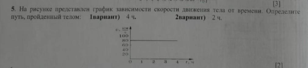 На рисунке представлен график зависимости скорости движения тела от времени. Определите путь, пройденный телом: 1вариант) 4 ч. 2варнант) 2ч.