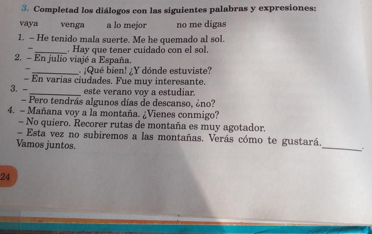 4. vaya 3. no me digas 2. venga 1. a lo mejor