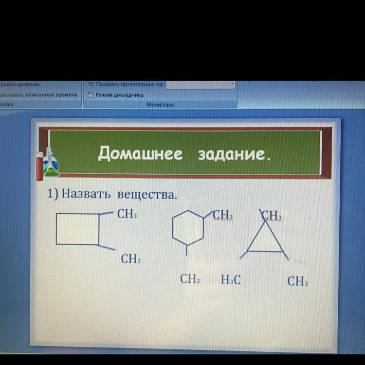 Ответ:1,2- диметилциклобутан, 1,3-диметилбензол, циклопропан