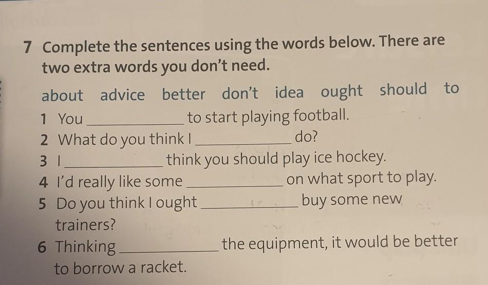 7.Complete the sentences using the words below. There are two extra words you dont need.