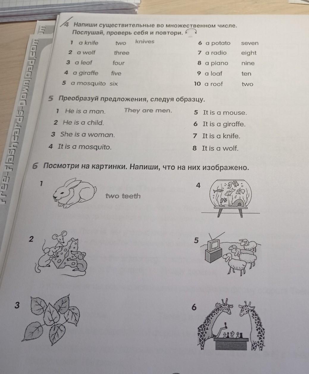 4) five giraffes