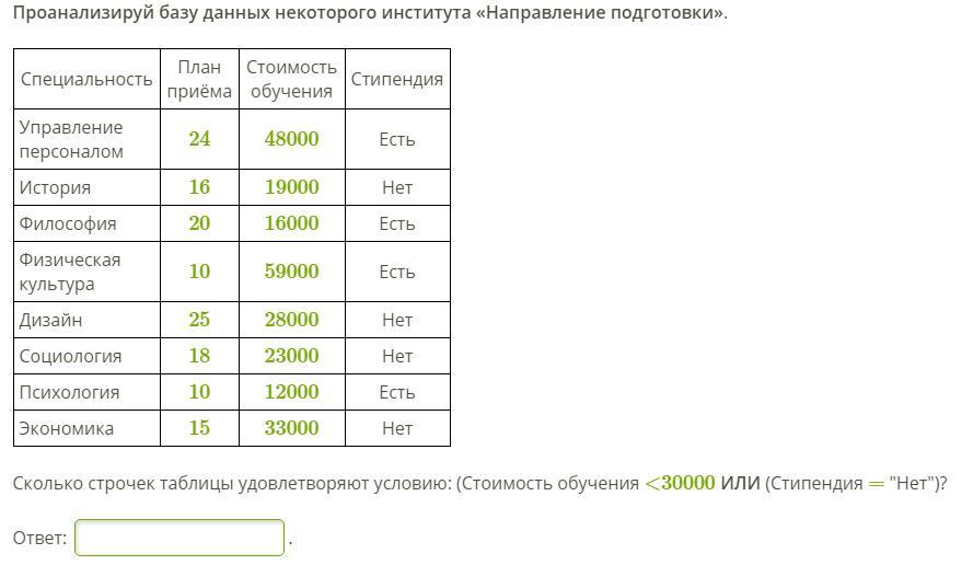 ответ: 6 записей удовлетворяют условию