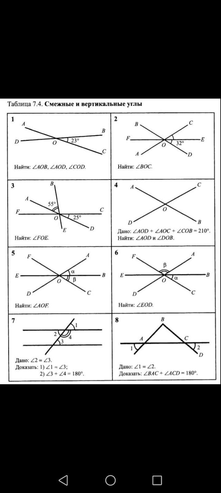 1) Найти ∠AOB, ∠AOD, ∠COD