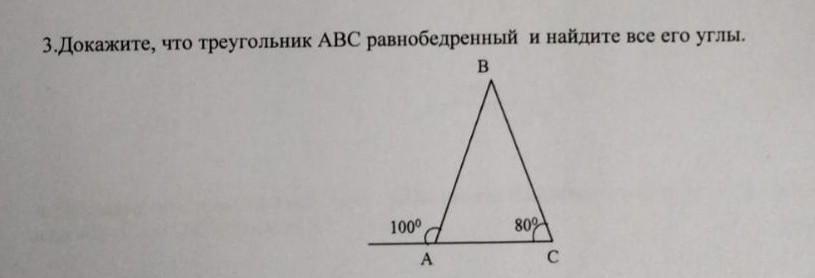 Сумма углов любого треугольника = 180° ⇒ ∠ABC = 180° - (2×80°) = 180° - 160° = 20°