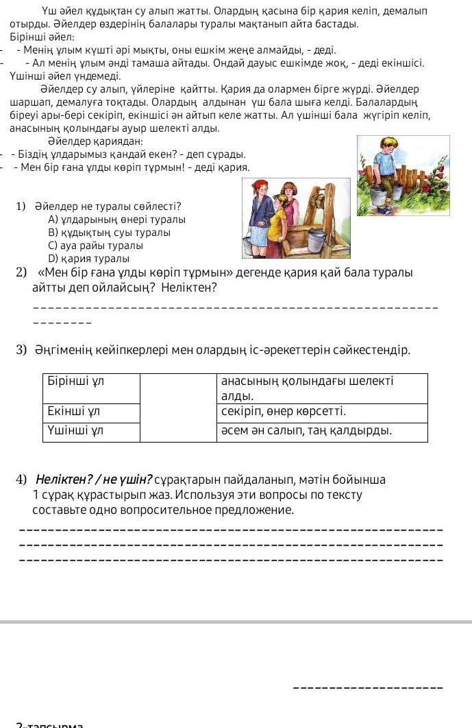 2) Қария үшінші ұл туралы айтты.Өйткені ол жүгіріп келіп,анасының қолындағы шелекті алды.