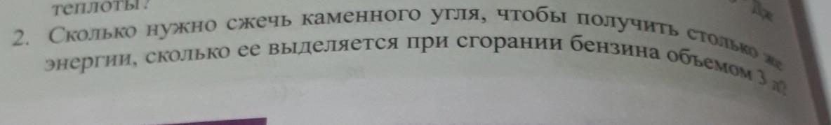 2. Сколько нужно сжечь каменного угля, чтобы получить столько же энергии, сколько ее выделяется при сгорани бензина объемом 3 л.