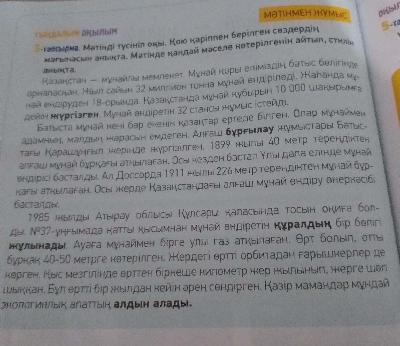 мәтінді оқып, әр ойбөлік не сөйлемнің тұрсына қарындашпен белгілеп айт.