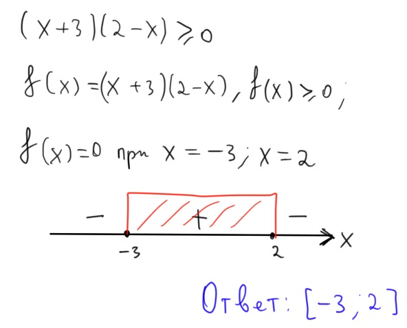 Найдите длину промежутка , на котором функция у=(х+3)(2-х) принимает положительные значения ( с полным решением)