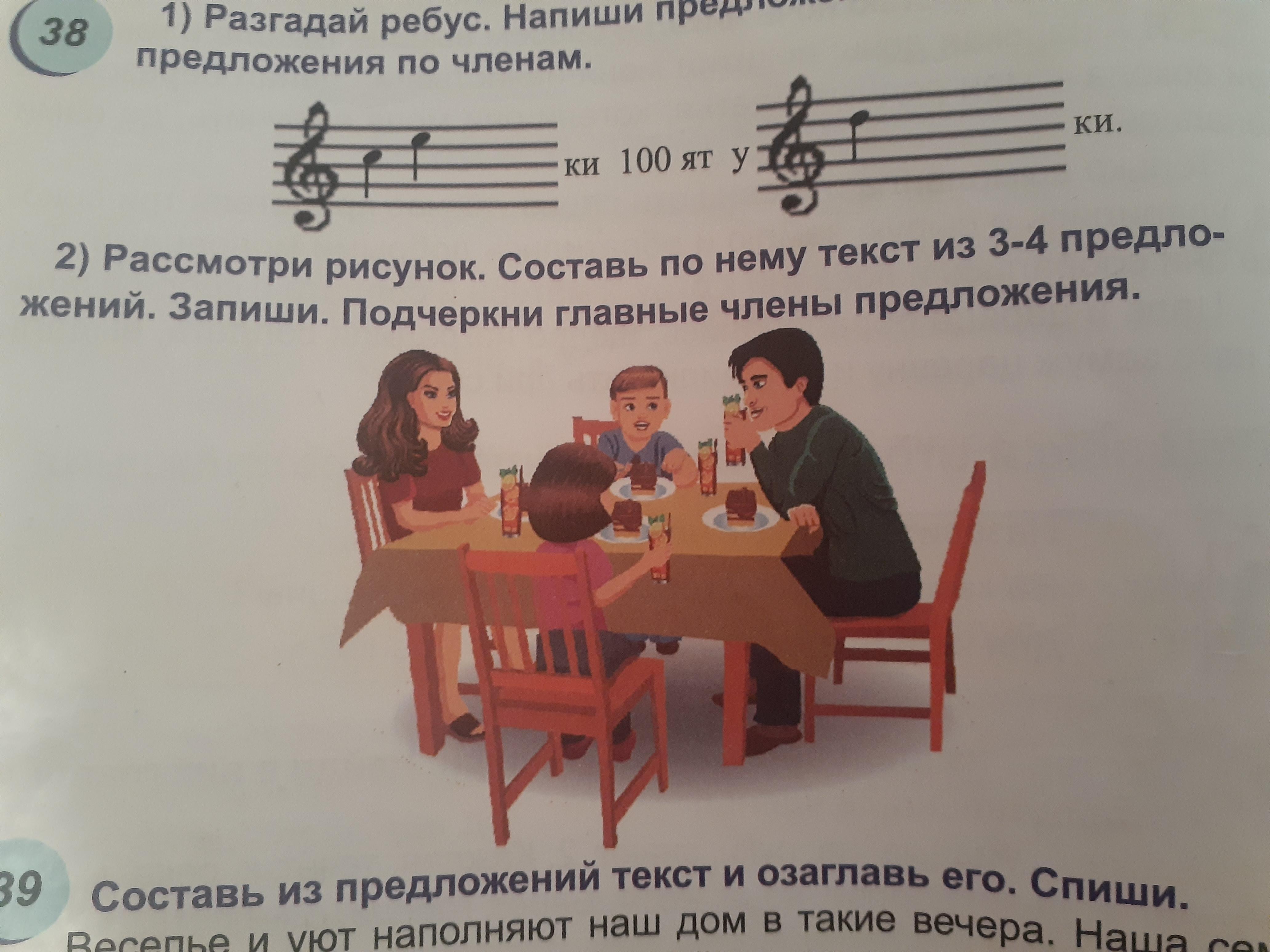 На рисунке я могу увидеть четырех человек. Я думаю они семья. Они сидят за столом и о чём то разговаривают.