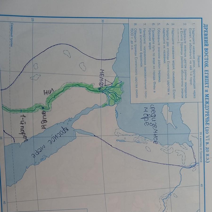 помогите с 6 вопросом в верхнем углу пж 6. Проведите путь по воде из города Фивы в Красное море.