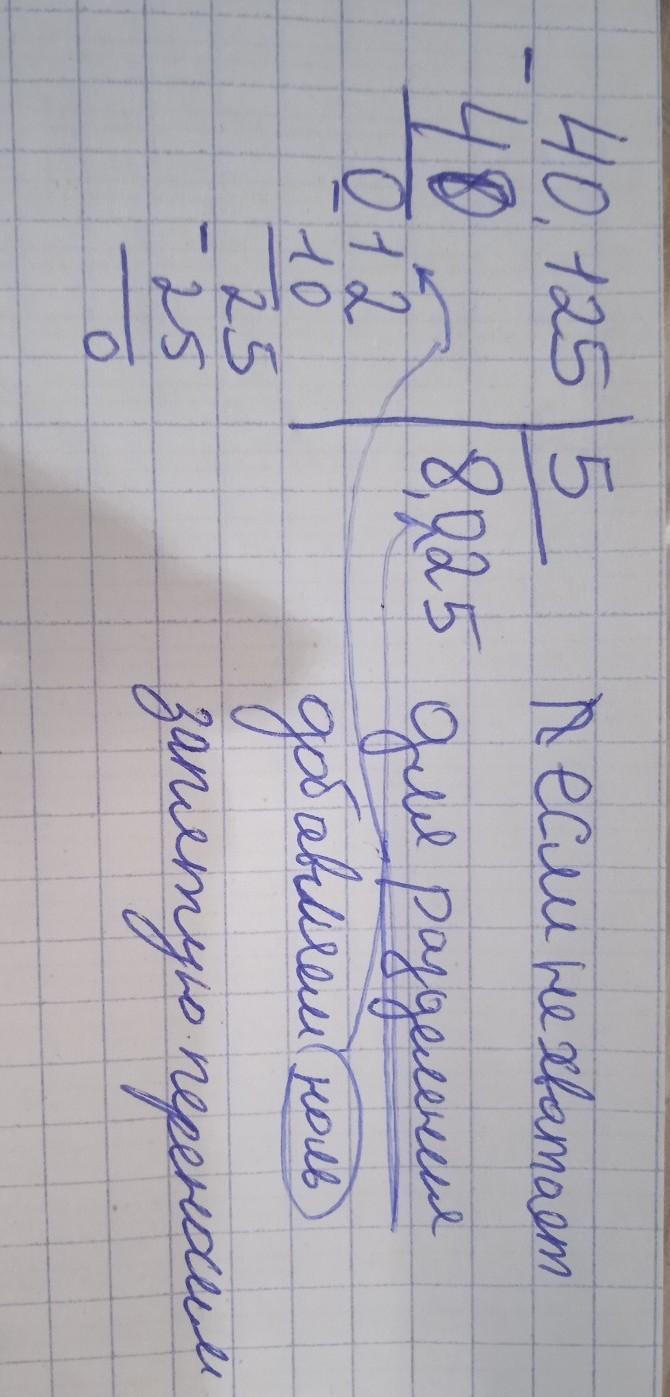 можете пожалуйста решить 40.125÷5 на листочке с объяснением если я папе не объясню этот пример он меня наругает прошу вас!!! помогите.