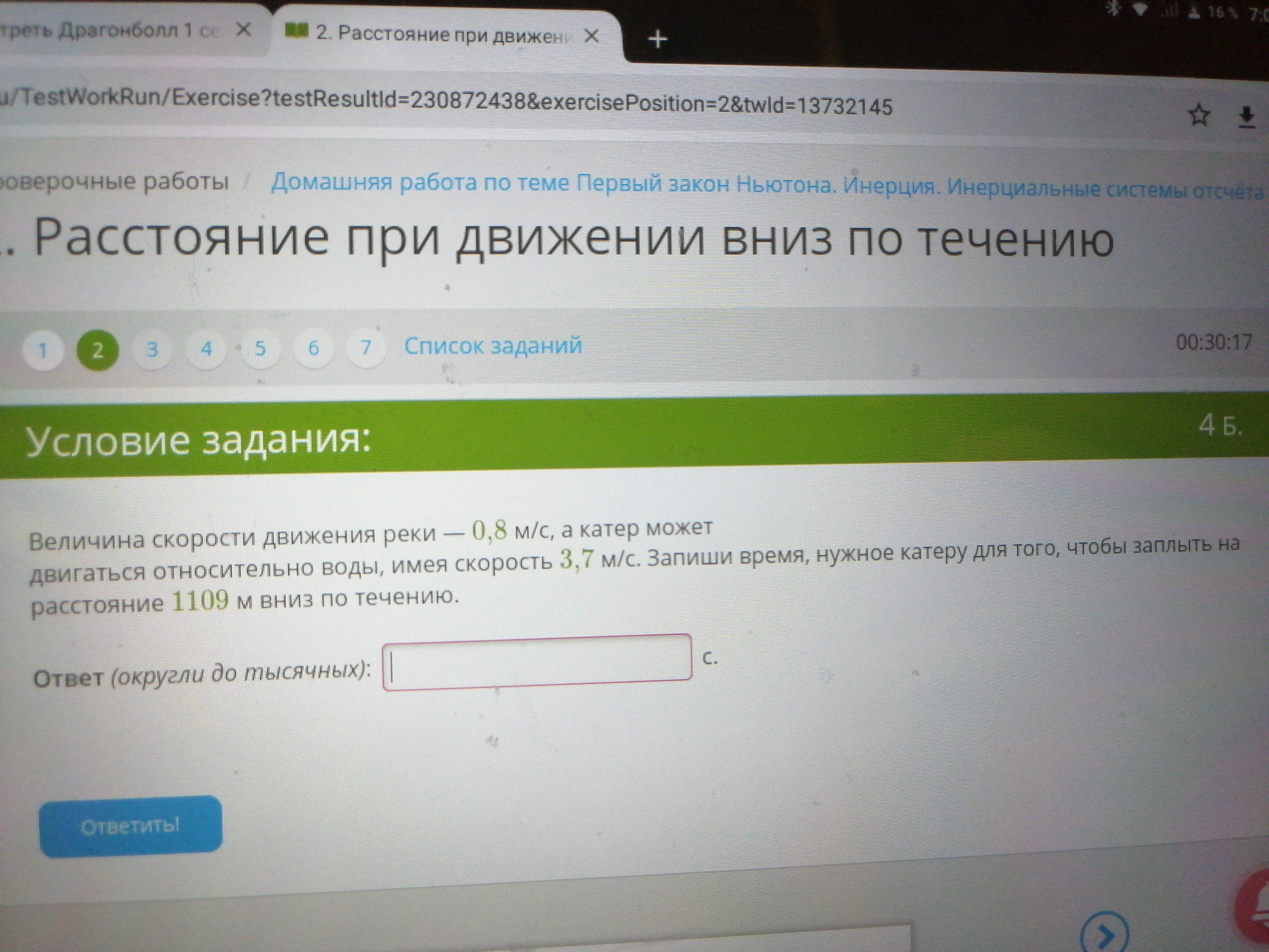 t = 1109 / (3,7+0,8) = 1109 / 4,5 ≈ 246, 4 с