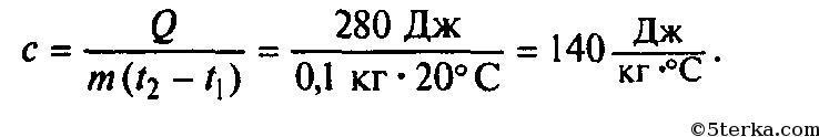 Экспериментом было установлено,что при изменении температуры куска металла массой 100грамм от 20градусов по Цельсию до 40градумов по Цельсию внутренняя энергия его увеличилась на 280Дж