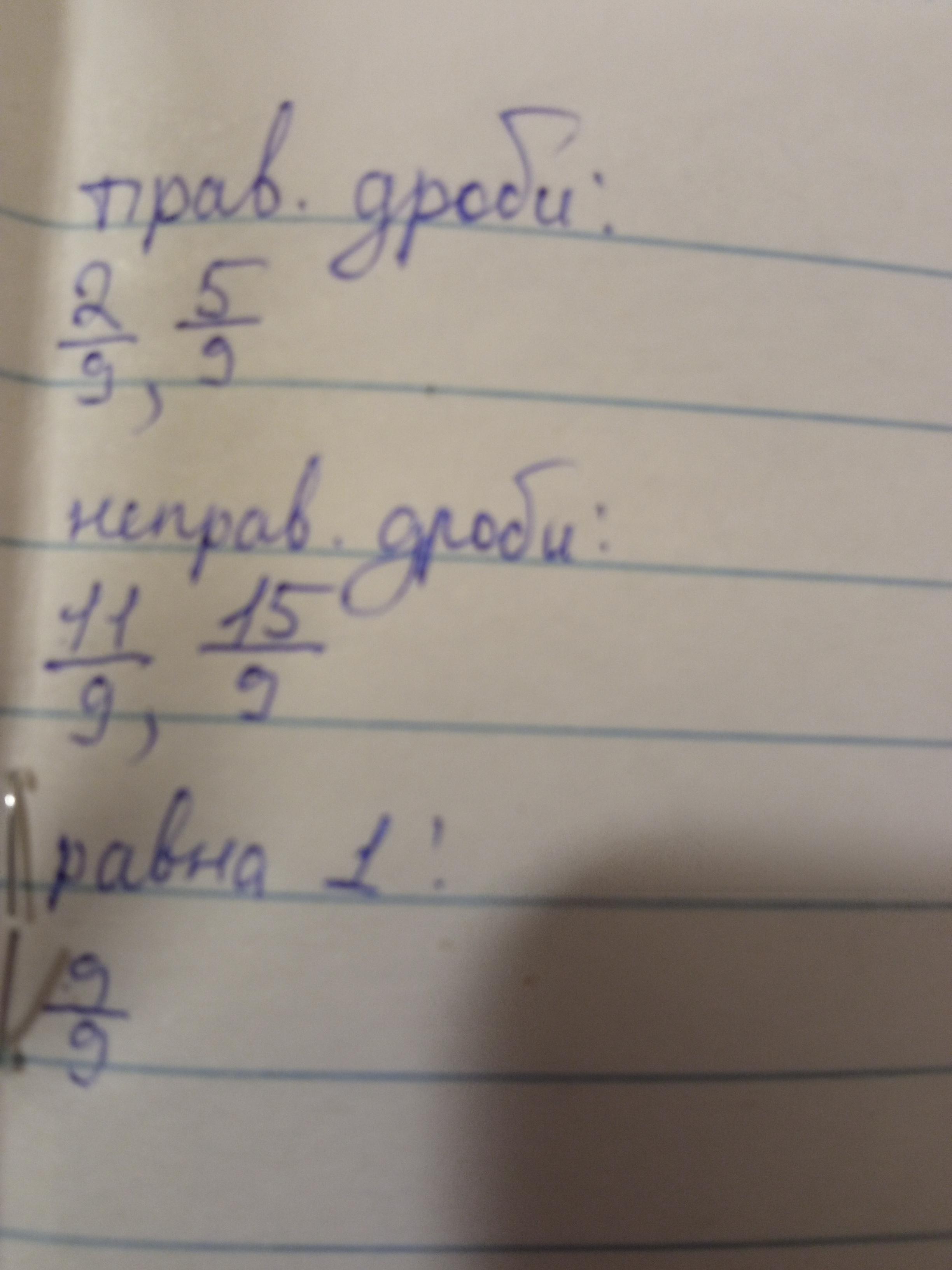 запишите две правильные обыкновенной дроби со знаменателем 9 две неправильные обыкновенные дроби со знаменателем 9 обыкновенную дробь со знаменателем 9 равно единице