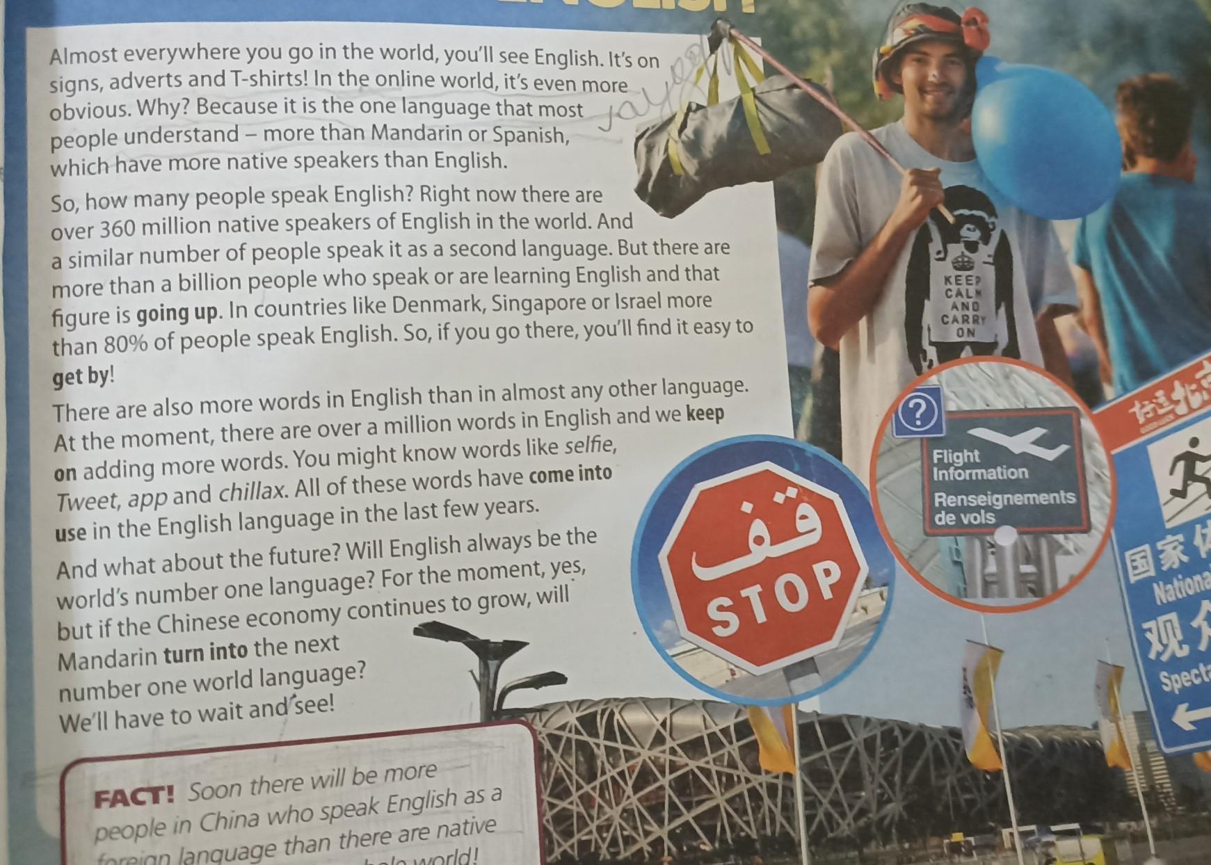 1 Work with a partner. Look at the pictures and answer the questions. 1 Where would you see the images? 2 Why do you think they are in English?