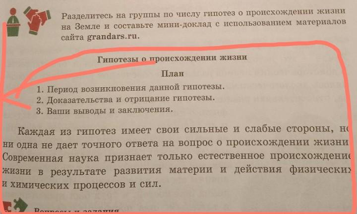 Разделитесь на группы по числу гипотез о происхождении жизни на Земле и составьте мини-доклад с использованием материалов сайта grandars.ru. Гипотезы о происхождении жизни План 1. Период возникновения данной гипотезы. 2. Доказательства и отрицание гипотезы. 3. Ваши выводы и заключения.