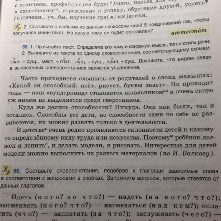 Управления : слышать от (кого?) родителей, слышать о (ком?) малышах, склонности (кого?) детей, выполнить из (чего?) материалов.